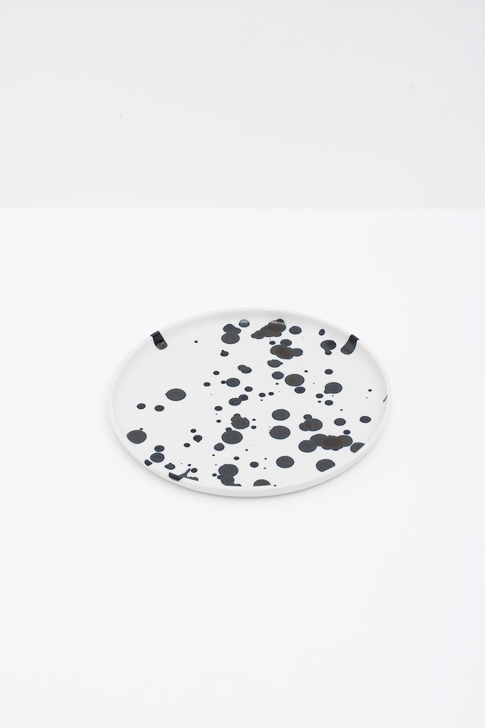 The splash collection is made of porcelain and is the most avantgarde of the collections. It is made using simple minimal forms like the sphere or the circle. The splash collection is made in white porcelain and is slipcast in handmade molds. Each item is splashed individually with a black glaze to create a unique look. This makes them eye-catching, decorative and useful objects for your home. Available in white porcelain with a black glaze and in different sizes and shapes. Variations in glaze applicaton are to be expected, they reflect the artisan nature of the product and should be embraced, making each piece a one of a kind.